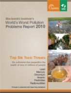The 2010 World’ s Worst Pollution Problems Report identifies the Top Six Toxic Threats, and describes the scope and health impacts of each pollutant. The report is the fifth in a series of annual pollution reports released by Blacksmith Institute and Green Cross Switzerland. This year’ s report is the most comprehensive to date, and draws on the substantial volume of research the organizations have conducted to identify and assess polluted sites.